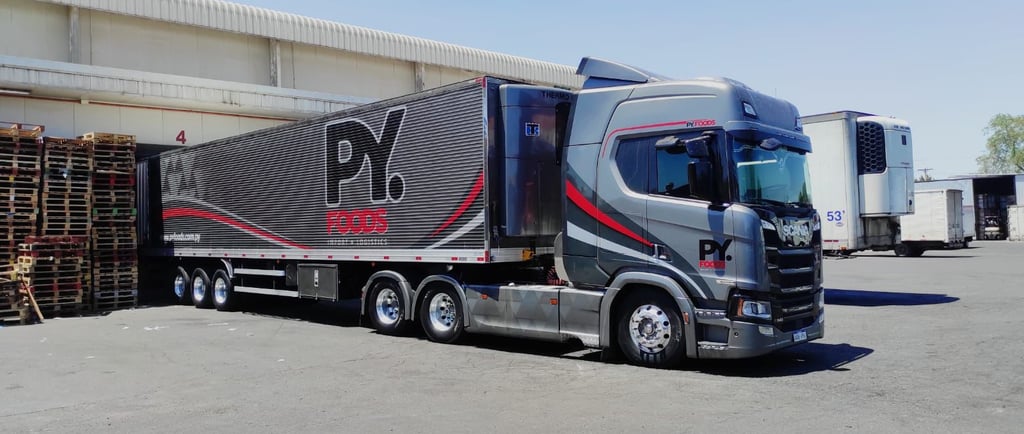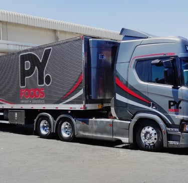 Desde 2020, PY FOODS brinda soluciones en transporte y logística internacional en Paraguay y Brasil, conectando el Mercosur con flota propia y monitoreo 24 horas.