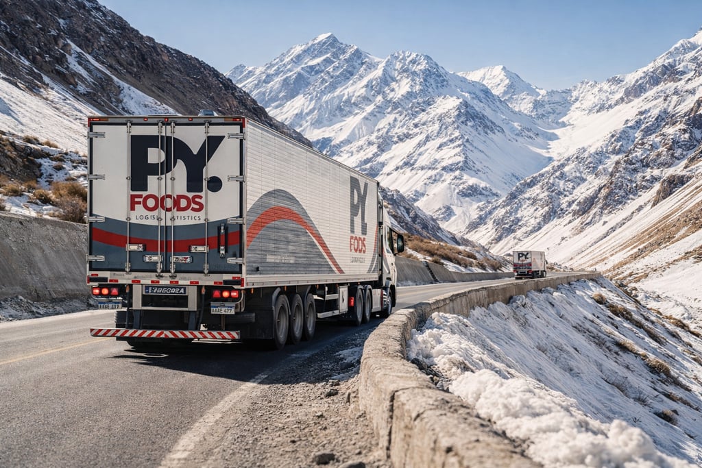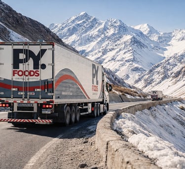 Desde 2020, PY FOODS brinda soluciones en transporte y logística internacional en Paraguay y Brasil, conectando el Mercosur con flota propia y monitoreo 24 horas.